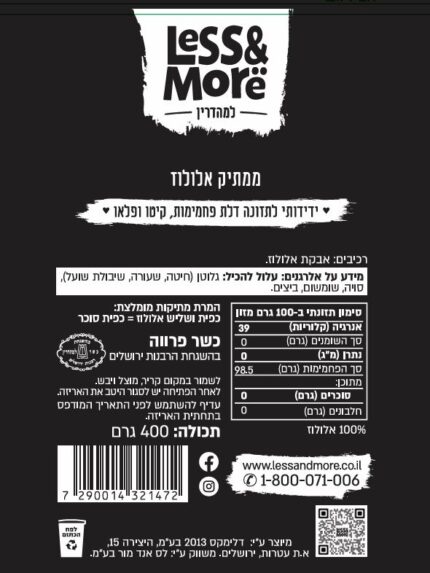 אלולוז 400 גרם – אבקת ממתיק ללא טעמי לוואי – לס אנד מור