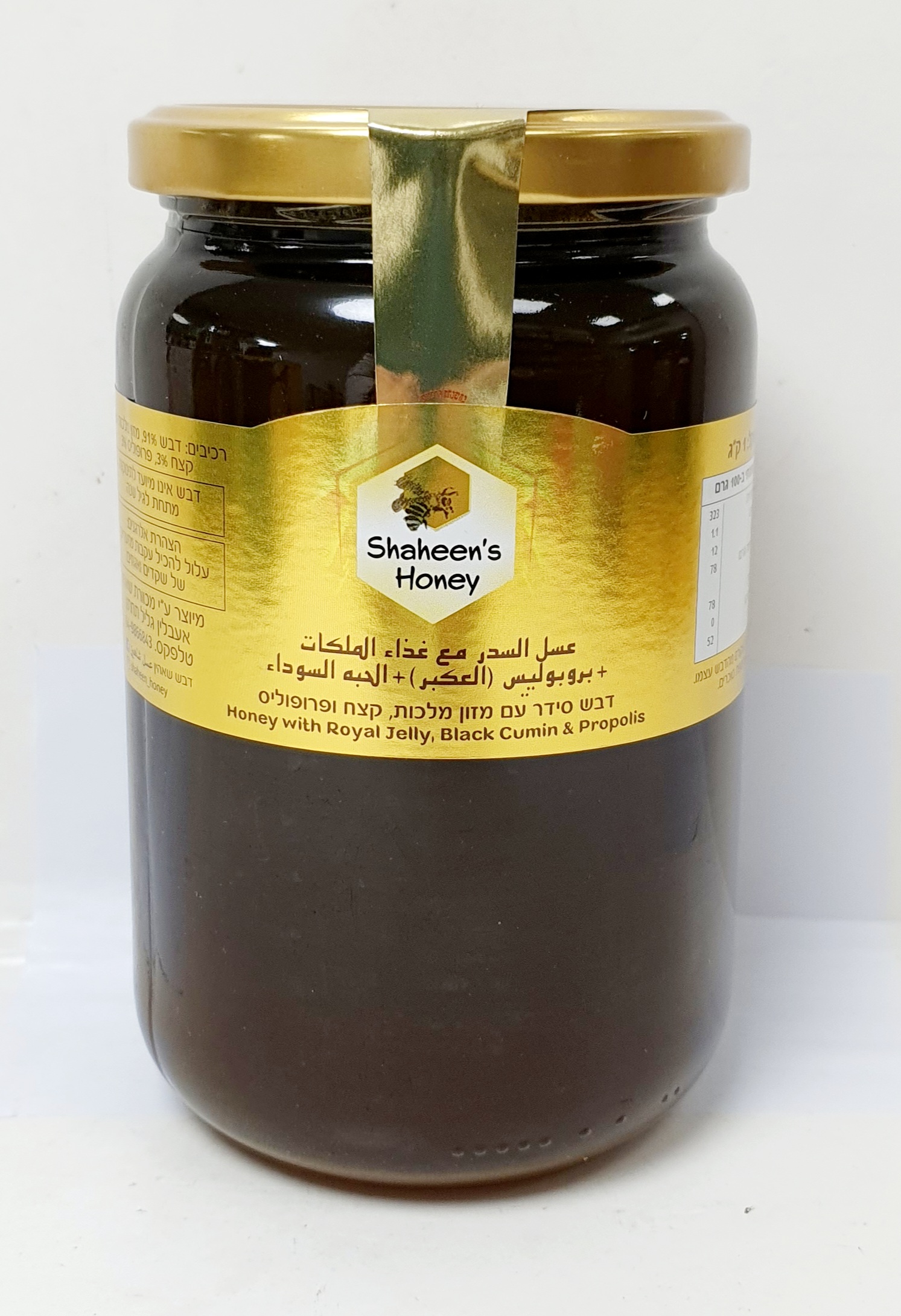 דבש שיזף עם מזון מלכות, חלה שחורה (קצח) ופרופוליס 1 קילו – דבש שאהין
