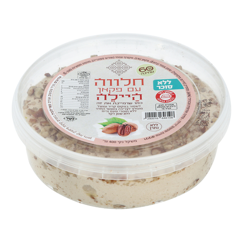 רכיבים: טחינת שומשום “היילה – טחינה אתיופית טבעית” (60%), סוכר, גלוקוזה, שומן צמחי (E471), פקאן (5%), מקציף צמחי (שורש ספונריה), מווסת חומציות (E-330).